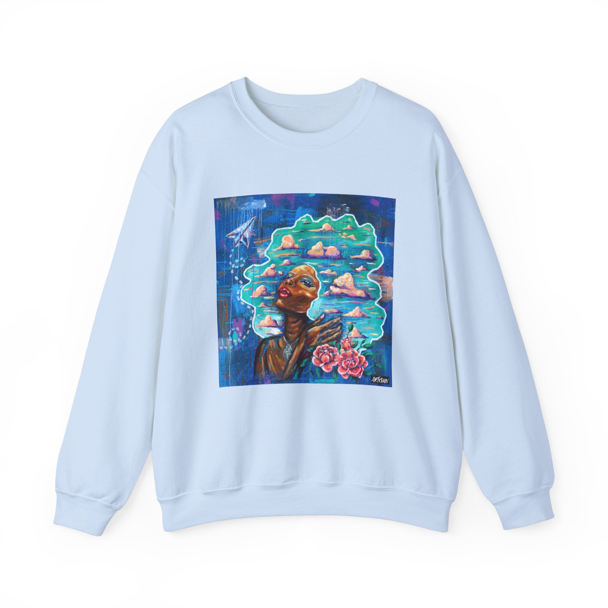 Paper Plane Dreams Sweatshirt with Art on Back